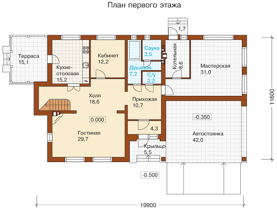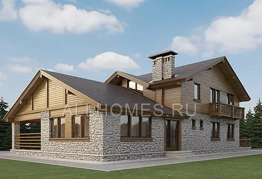 Проект комбинированного дома из клеенного бруса К-295
