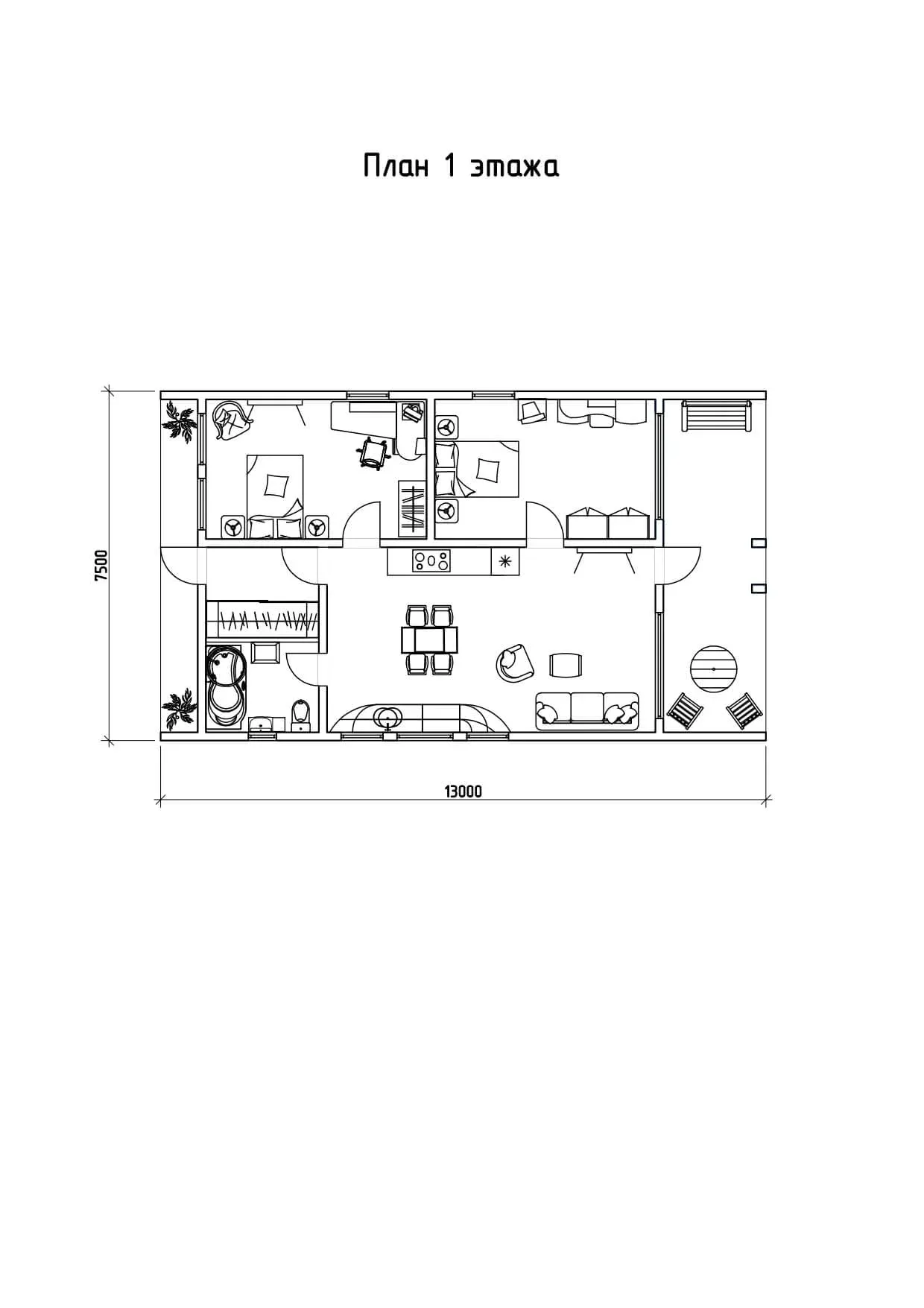 1. Комплект каркаса наружных стен из профильной клееной балки (тавр – 90 х125 м, угол – 90х125 мм).