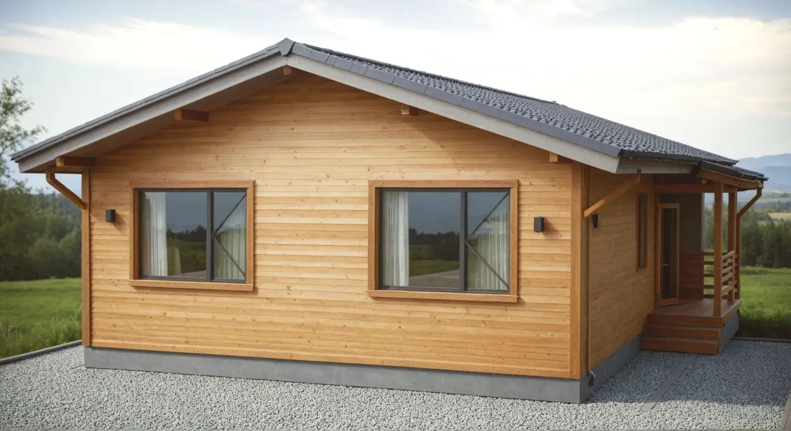 Быстрая сборка из готовых профилированных деталей по чертежам (доска на стропила в комплект входит, но не запилена).